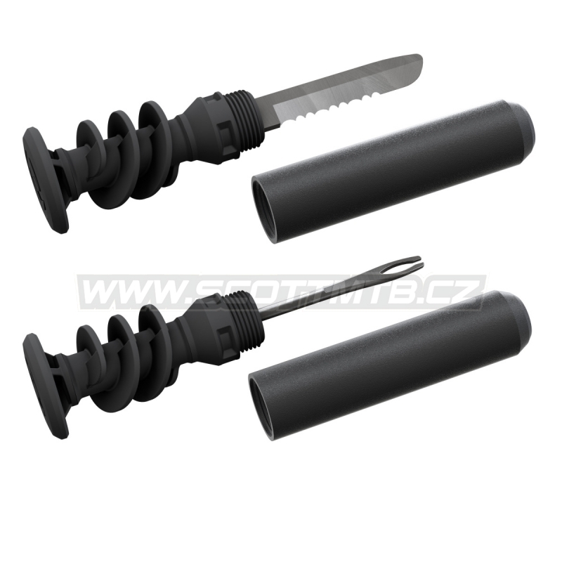Vlastnosti: Jeden nástroj na zavedení knotu do bezdušových plášťů / druhý nástroj řezák na zkrácení konce knotu, 5 náhradních knotů 3,5 mm, 5 náhradních knotů 1,5 mm. Můžete nainstalovat jak do karbonových, tak hliníkových řídítek horských kol s průměrem minimálně 18 mm nástroje jsou bezproblémově integrovány do našich gripů. Přesně sedí do XM a AM gripů a jsou kompatibilní s hliníkovými a karbonovými řídítky Syncros.